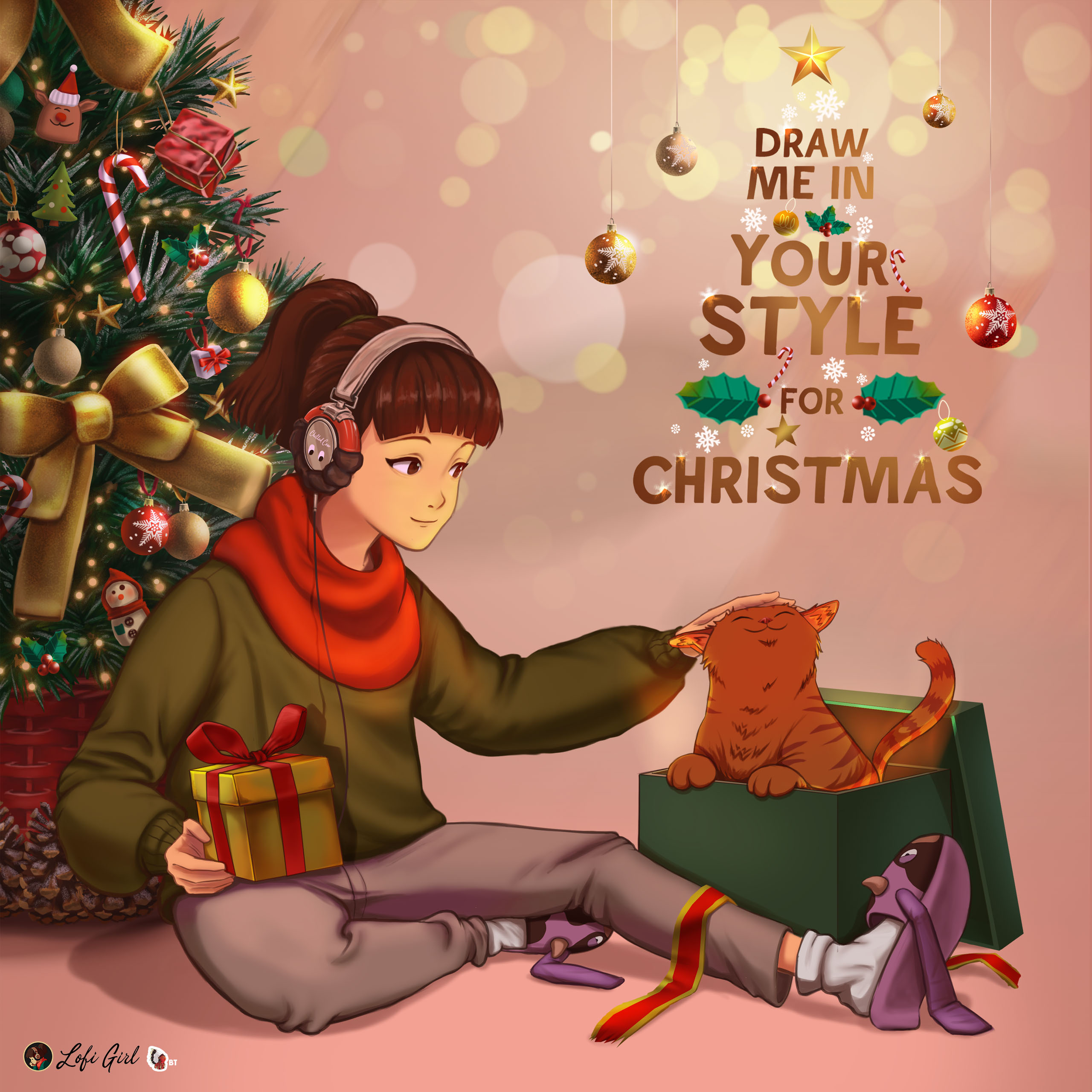 Illustration 2d. Affiche réalisée pour le lancement du concours de ‘Dessines Lofi girl dans ton style pour noël’.
